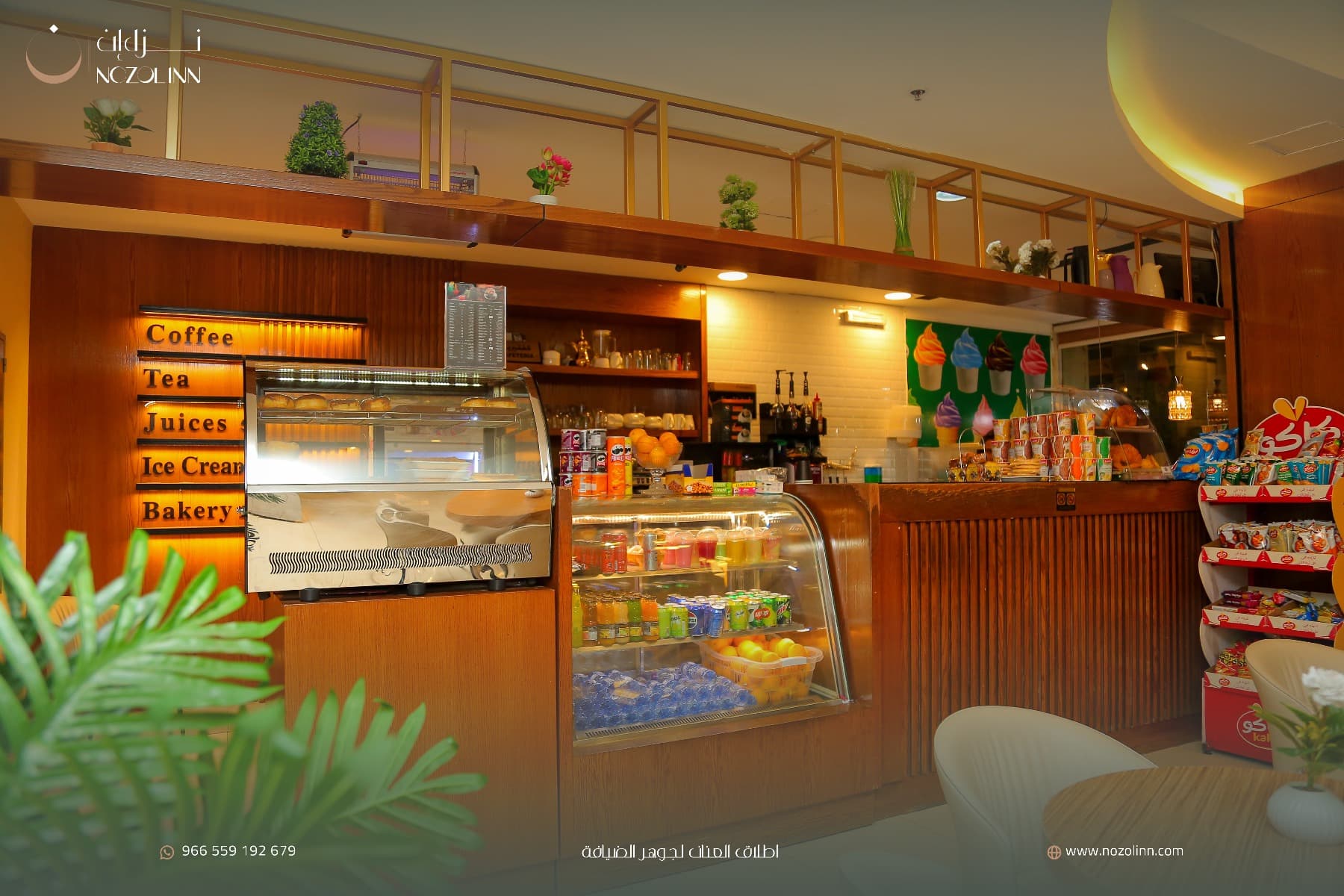 - ثلاجة صغيرة ومستلزمات إعداد القهوة والشاي داخل الغرفة